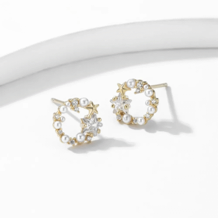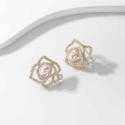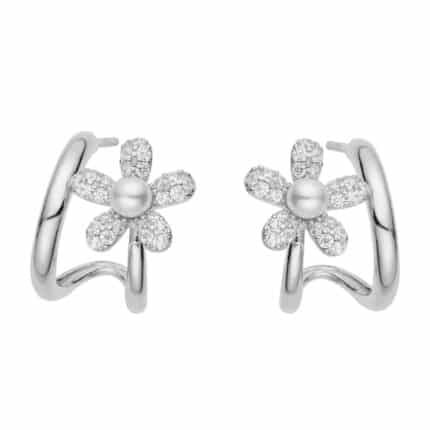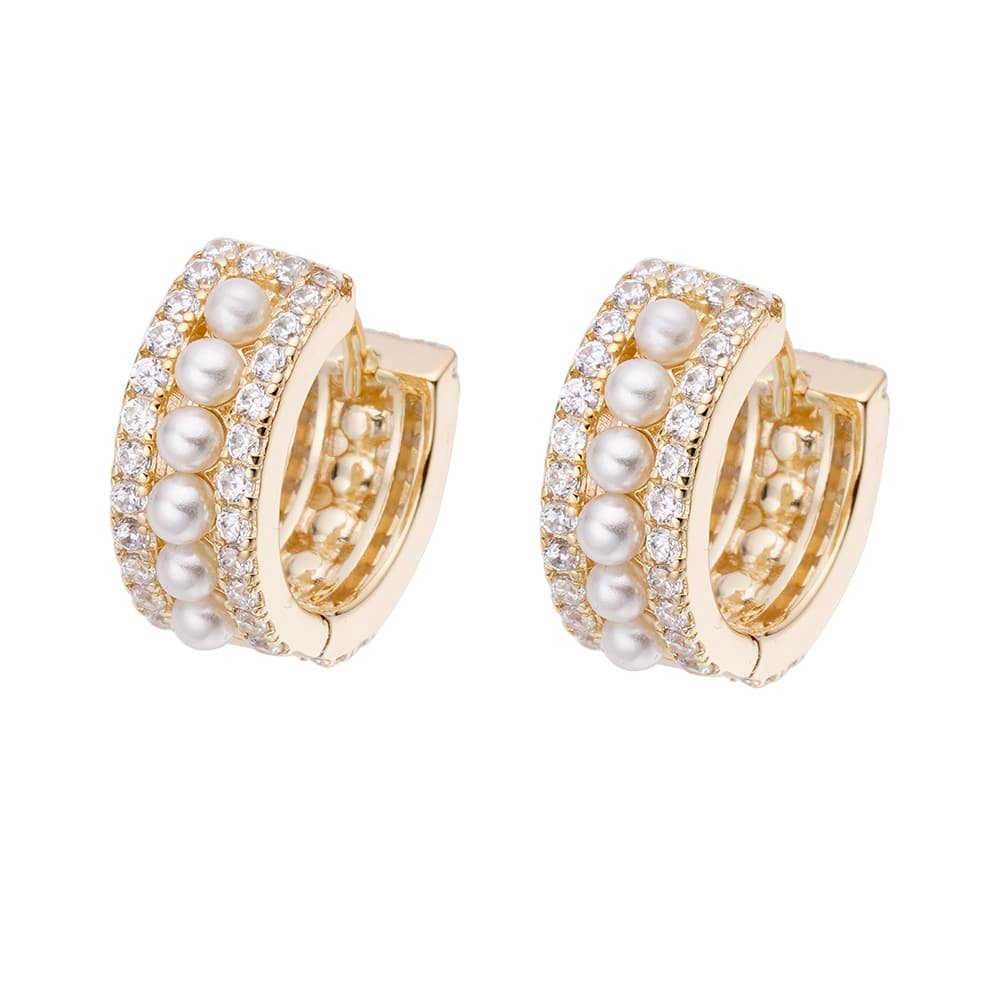 Classic pearls meet contemporary sparkle in the Moonlight Bloom Earrings — a radiant fusion of softness and shine. Rows of luminous pearls are framed by bands of shimmering pavé stones, creating a bold yet refined silhouette. Available in both gold and silver, these earrings bring a touch of moonlit magic to any look — timeless, graceful, and effortlessly captivating.
